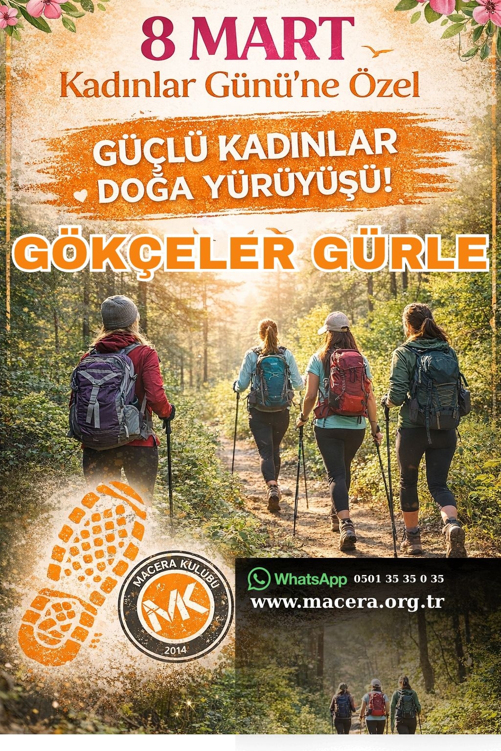 8 MART Pazar günü servis araçlarımız ile sizleri Cumartesi akşamı sms ile bildirilecek olan saat ve yerlerden alarak kahvaltı yapacağımız Üniversite 2 unlu mamüllere gidiyoruz. Burada her çeşit unlu mamülü bulabilirsiniz. Hep birlikte kahvaltımızı yaptıktan sonra tekrar servis araçlarımız ile yürüyüşümüzün başlangıç noktası olan Gökçeler köyüne hareket ediyoruz.